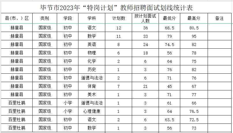 原文標題:畢節(jié)市2023年“特崗計劃”教師招聘面試劃線情況公告
